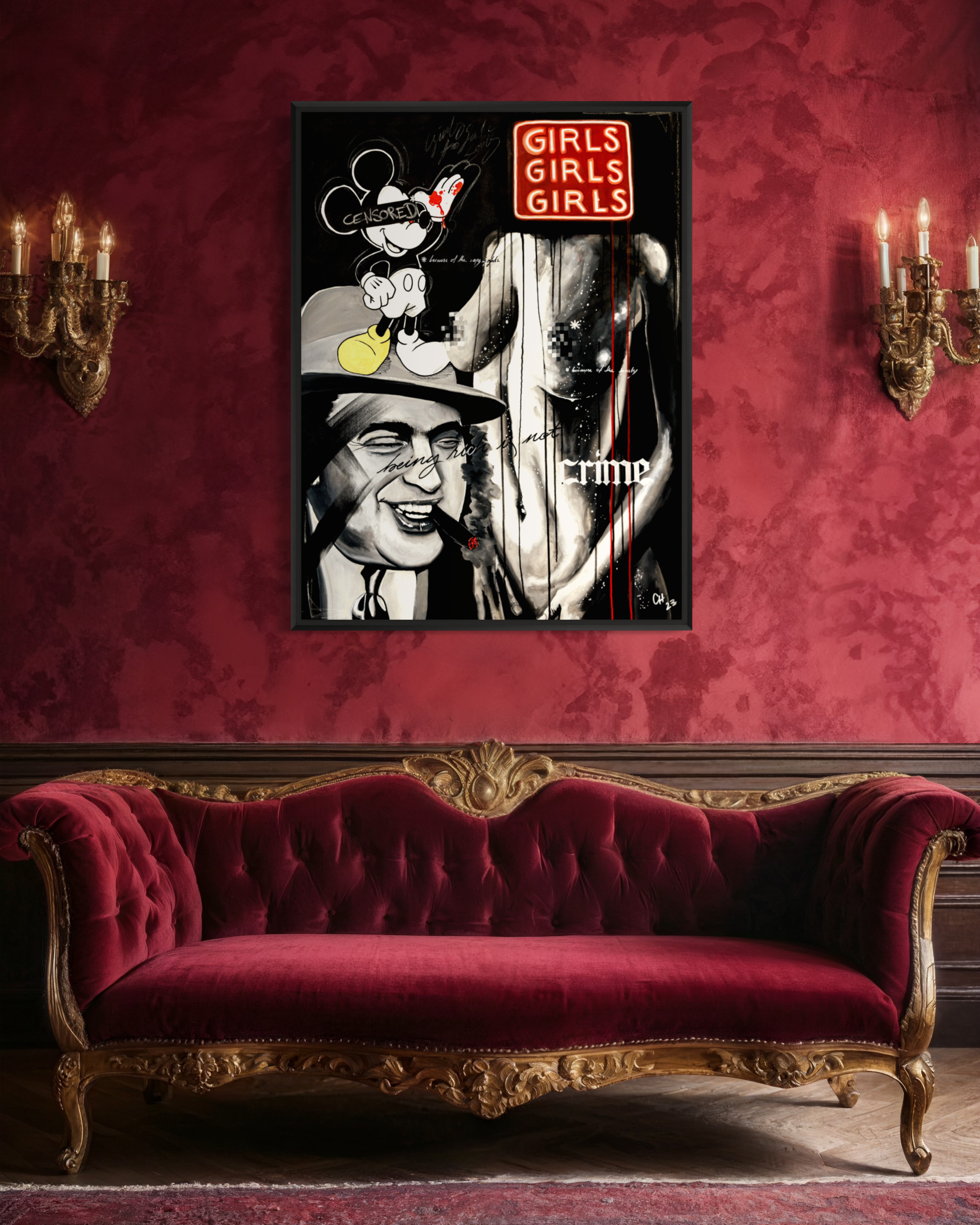 Bringen Sie mit „being rich is not a crime“ ein provokantes Kunstwerk in Ihr Zuhause, das die Diskussion über Kultur, Medien und die Wahrnehmung von Schönheit anregt.