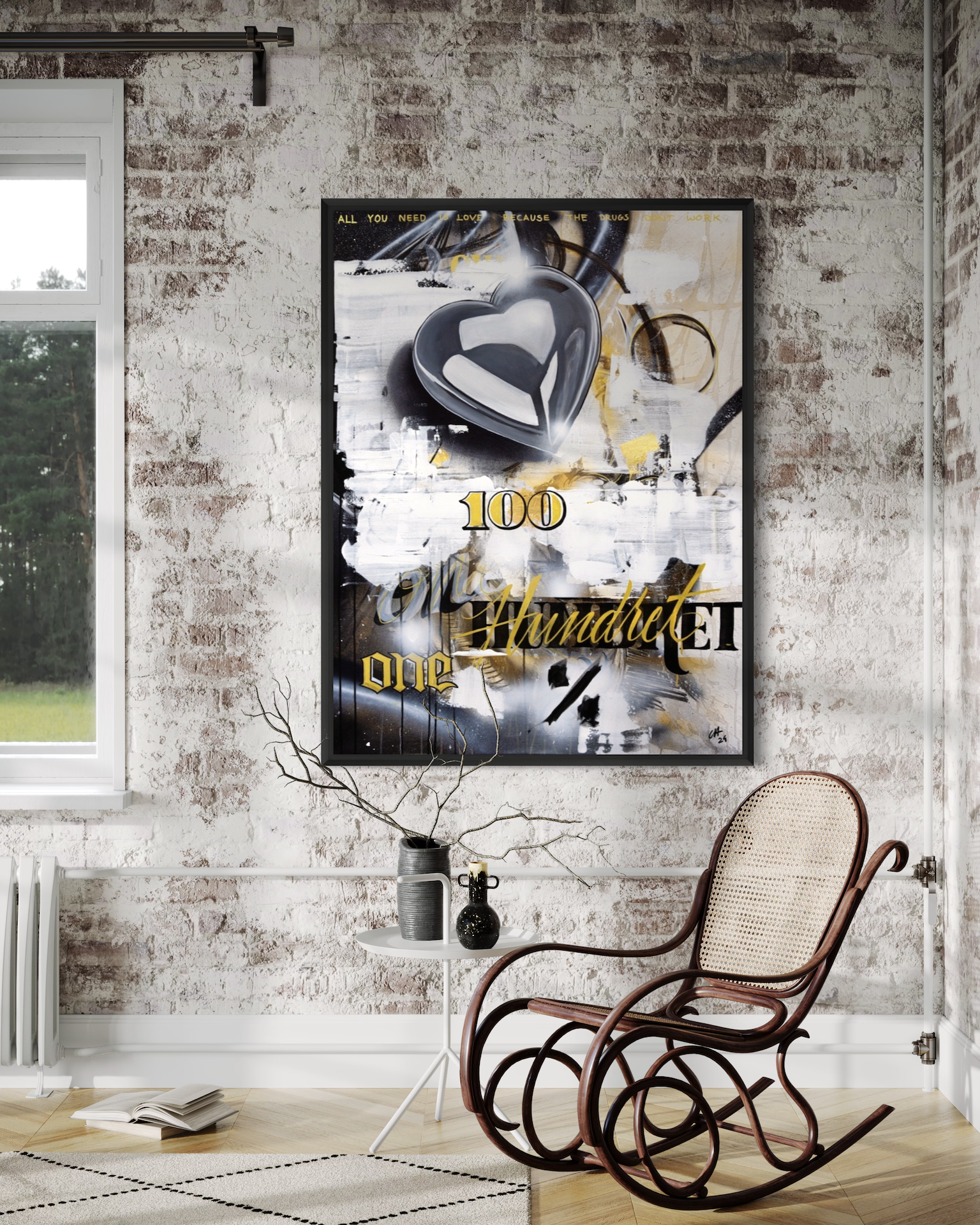 Holen Sie sich mit „Chrome Herz“ ein Stück Kunst, das gleichzeitig edel und kraftvoll ist. Ein perfektes Geschenk für Kunstliebhaber oder als Statement in Ihrem eigenen Raum.
