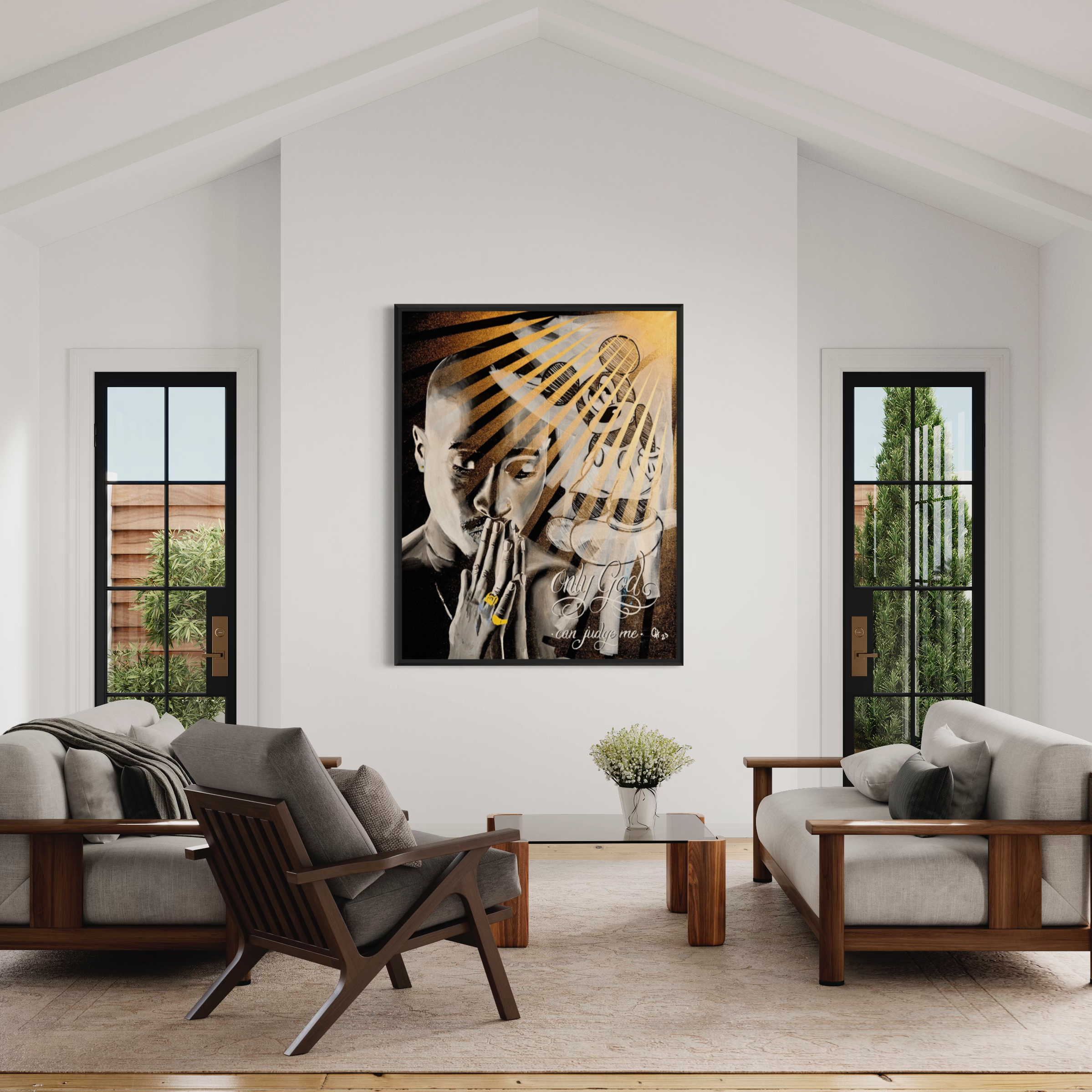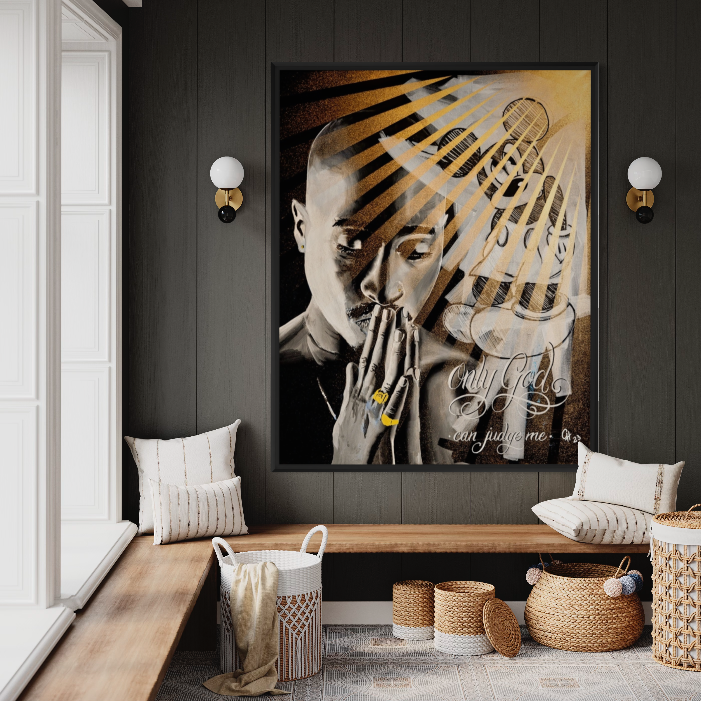 Leinwandbild „Only God Can Judge Me“ – Eine Hommage an 2Pac und die Verbindung von Glauben, Rebellion und Gesellschaft