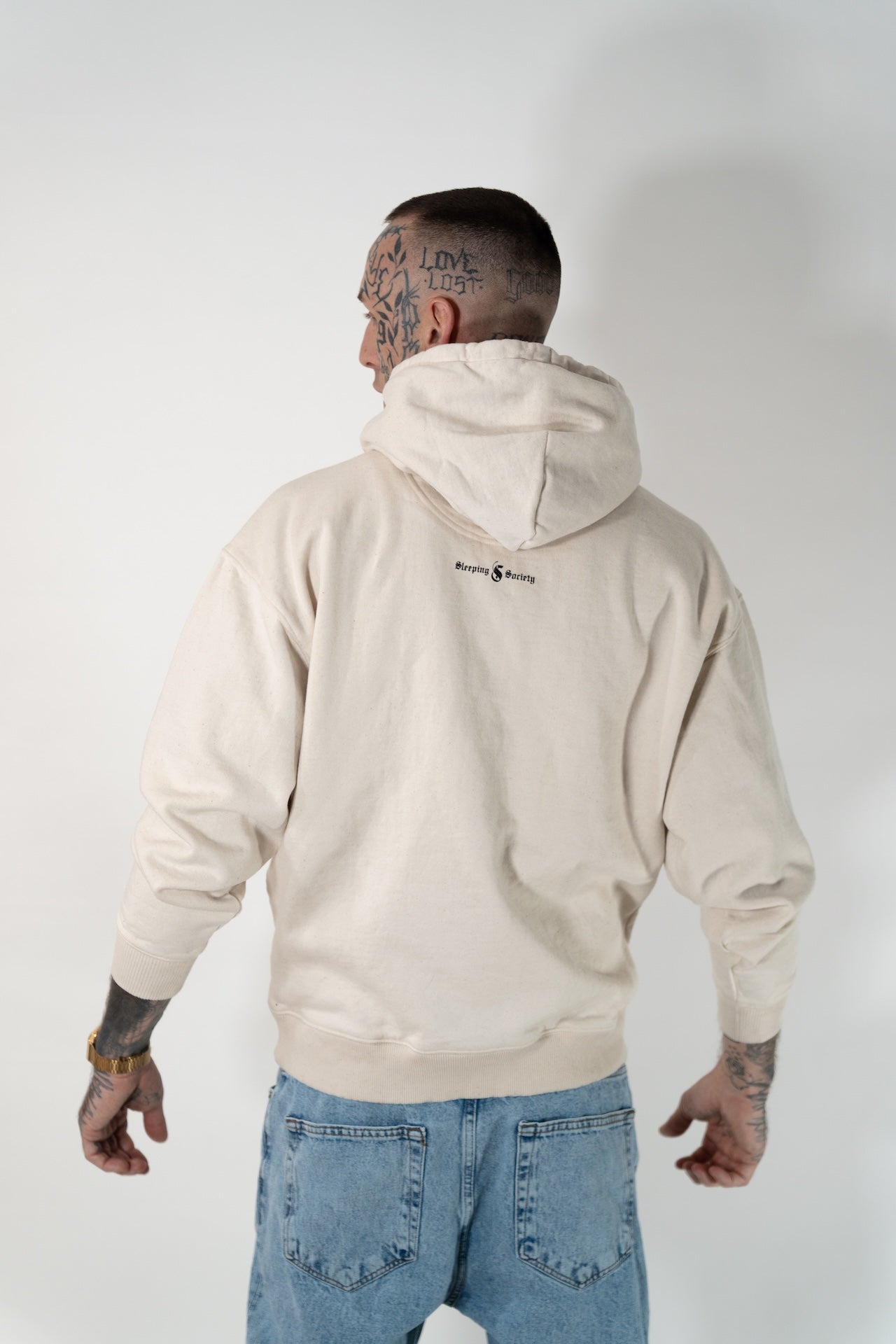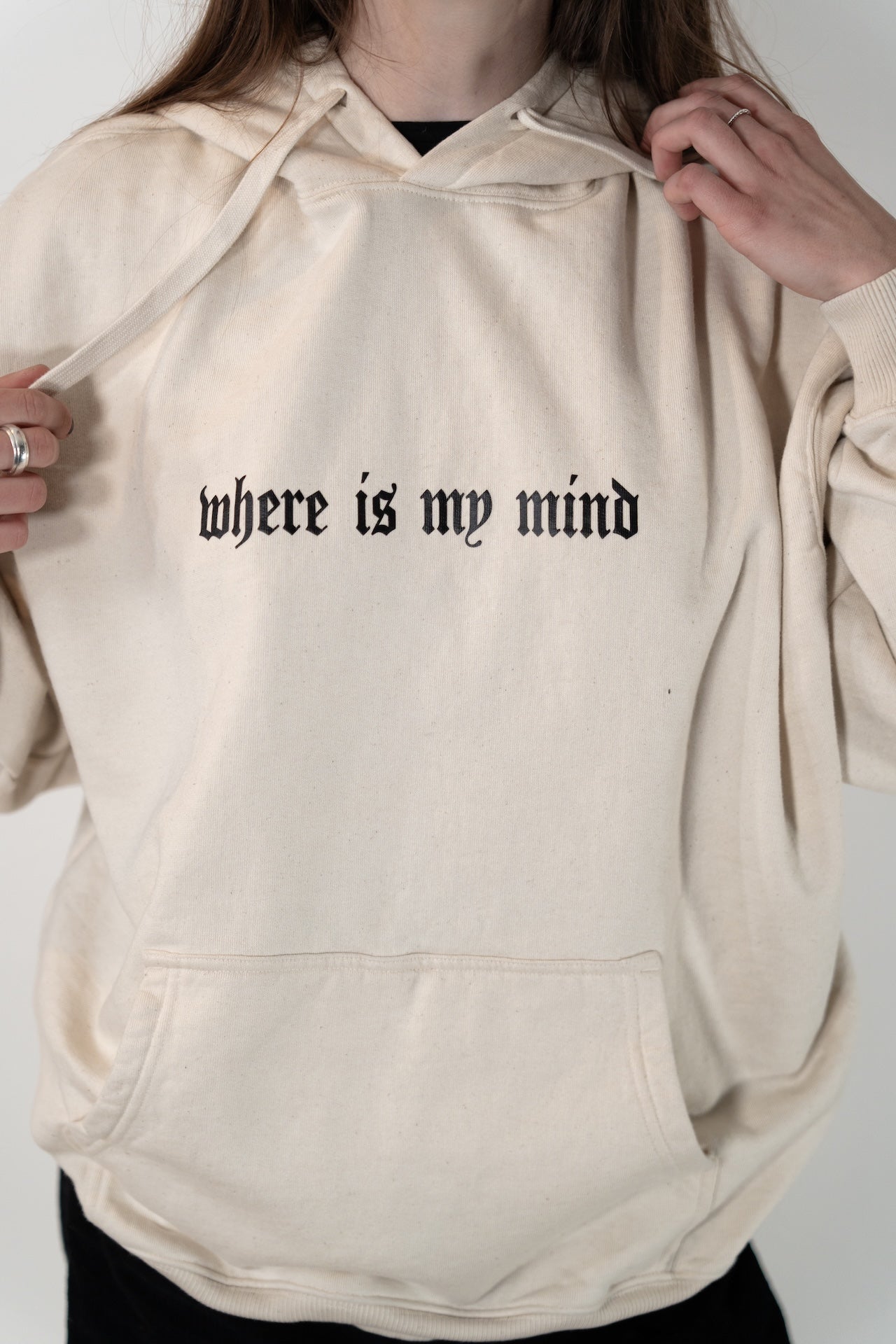 Oversize Hoodie "where is my mind", Vegan, OEKO-TEX zertifiziert & Mitglied der Fair Wear Foundation, Material: 100% biologische Baumwolle, Farbe: Beige, Oversized-Schnitt, Sozialstandards in der gesamten Lieferkette, Made in Bangladesch, Veredelt am Chiemsee with love, Versand innerhalb Deutschland: 3-7 Tage mit DHL goGreen