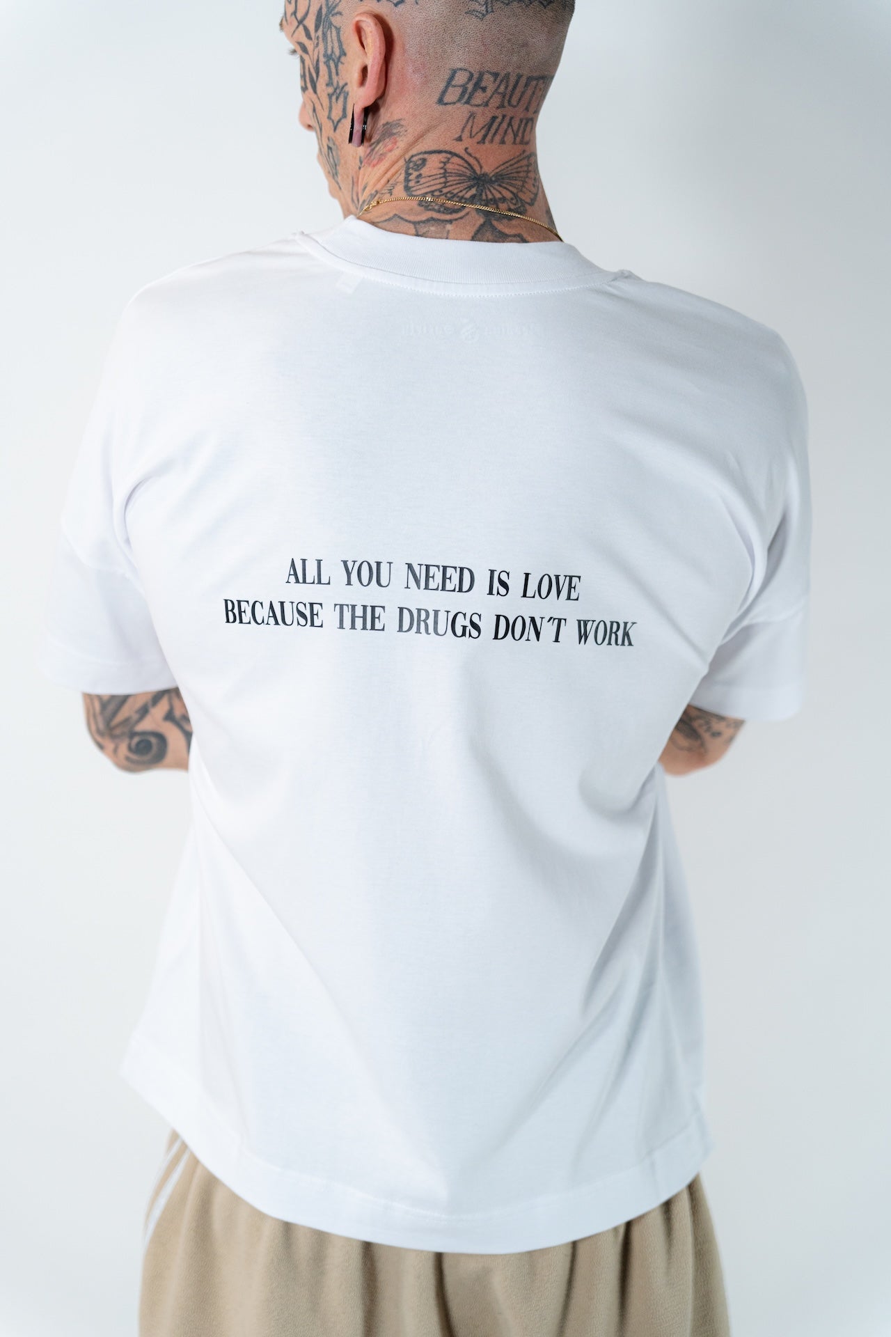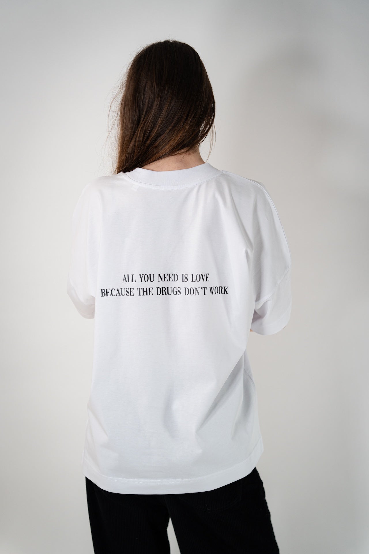 Oversize T-Shirt "all you need", Vegan, OEKO-TEX zertifiziert & Mitglied der Fair Wear Foundation, Material: 100% biologische Baumwolle, Farbe: Weiß, Oversized-Schnitt, Sozialstandards in der gesamten Lieferkette, Made in Bangladesch, Veredelt am Chiemsee with love, Versand innerhalb Deutschland: 3-7 Tage mit DHL goGreen